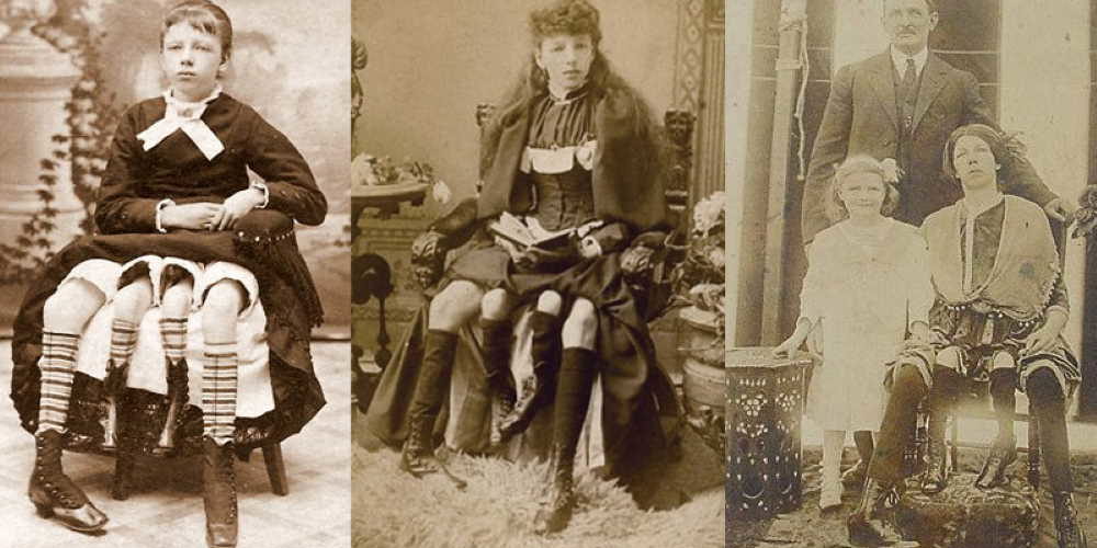 Josephine Myrtle Corbin, nascida em 1868, no Tennessee, EUA, era conhecida como a “A Mulher de Quatro Pernas”. Isso porque o par de pernas extras que eram vistos além da barra de seus vestidos pertenciam, na verdade, à sua irmã gêmea.