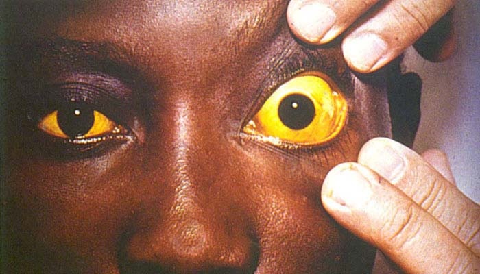 2 – Manchas amarelas em torno dos olhos e/ou cotovelos