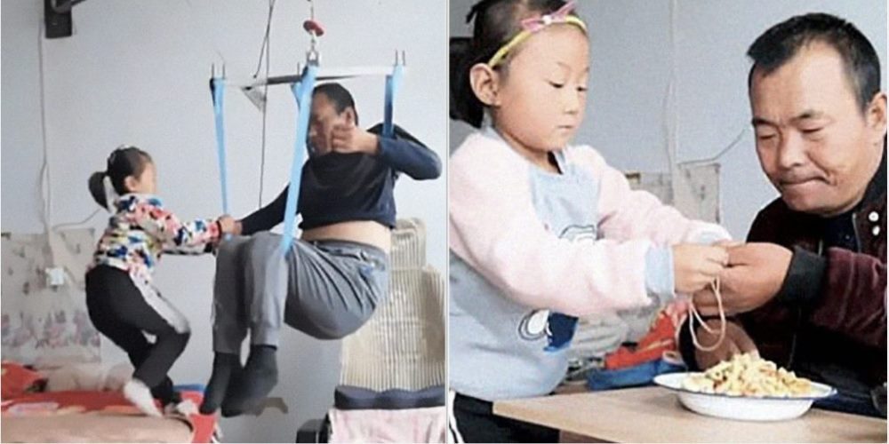 Responsável por alimentá-lo e ajudá-lo a se mover diariamente, a menina nunca se queixou da necessidade e ainda comoveu muita gente na internet após sua história ser publicado na imprensa da China.