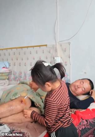 Seu pai, Tian Haicheng, de 40 anos, ficou paralisado do peito para baixo após um táxi que pegava cair em uma vala enquanto viajava em alta velocidade.