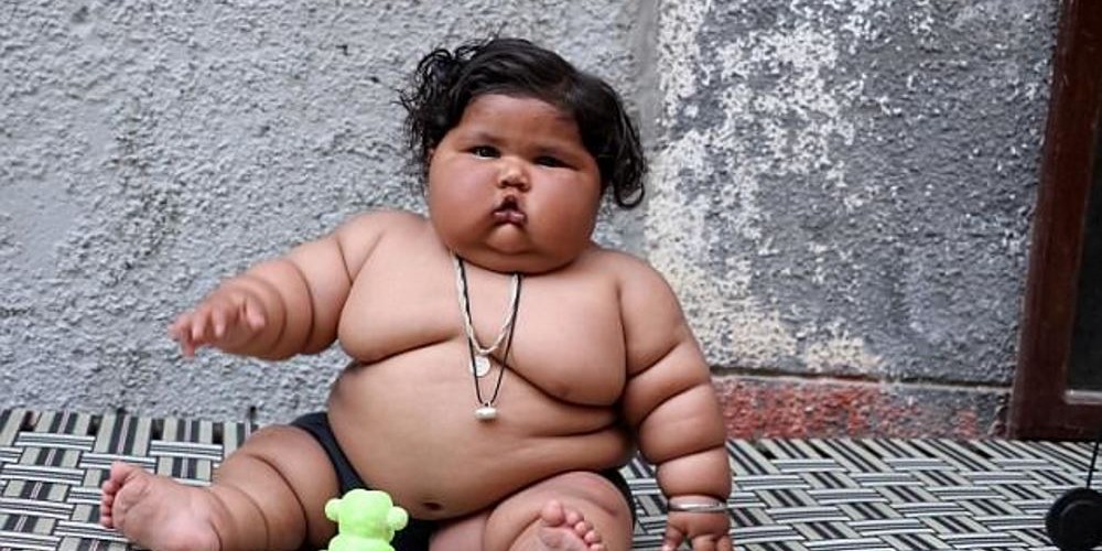 Chahat Kumar, uma menina de apenas oito meses, de Punjab, na Índia, pesa pouco mais de 17 quilos, devido a seus desejos constantes por comida.