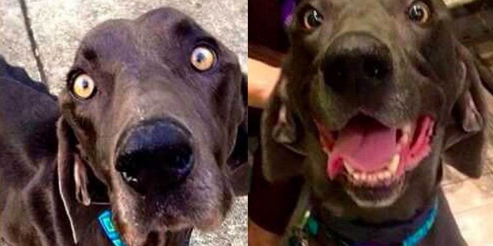 Um cão da raça Weimaraner chamado Alex estava abandonado e sobreviveu nas ruas se alimentando de rochas e galhos. Mas ele achou uma mãe adotiva e passou por uma boa recuperação.