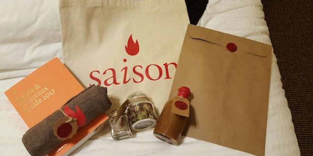 O restaurante termina sua visita enviando-lhe uma embalagem com um saco de guloseimas. Eles incluem uma cópia do menu que você experimentou e vários condimentos.