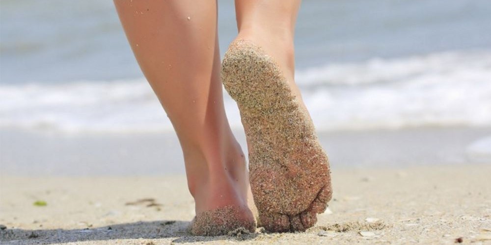 As melhores superfícies para começar a andar descalço são as macias que fornecem muitos estímulos, como por exemplo grama ou areia.