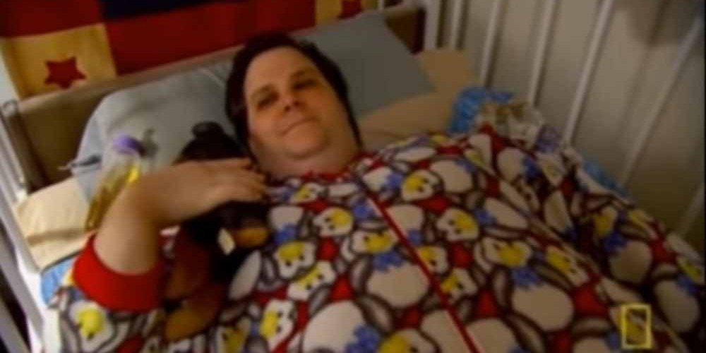 Quando ele chega em sua casa em Redding, na Califórnia, depois de um dia de trabalho, sua forma de relaxar é tomar uma mamadeira com leite quentinho, chupar chupeta e brincar com seus brinquedos. “Eu ajo como um bebê todos os dias“, comentou o homem, que tem 1,67 m de altura e pesa mais de 130 kg.