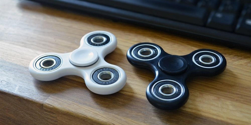 Fidget spinners são pequenos dispositivos que uma pessoa pode girar entre seus dedos ou em uma superfície.
