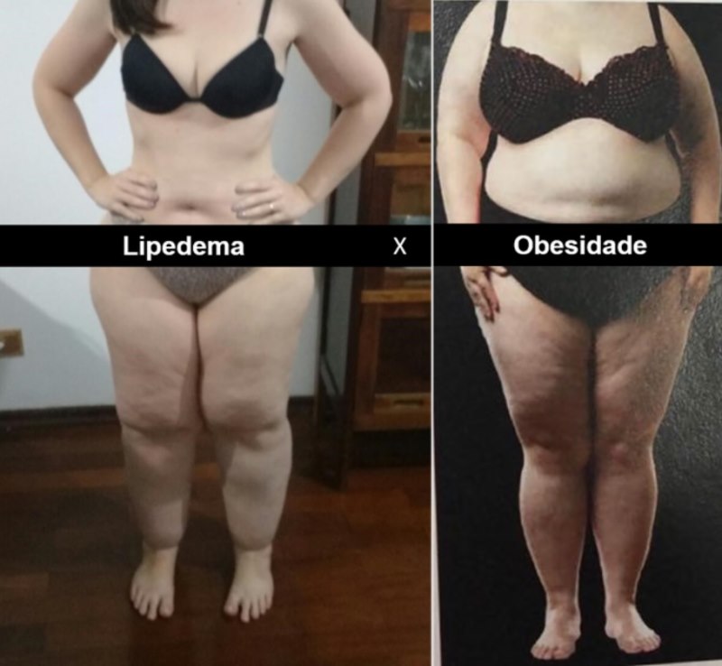 A diferença entre lipedema e obesidade é que, no lipedema, a gordura excessiva não se distribui pelo corpo todo. Mesmo emagrecendo, as pernas não emagrecem e o acúmulo torna-se evidente.