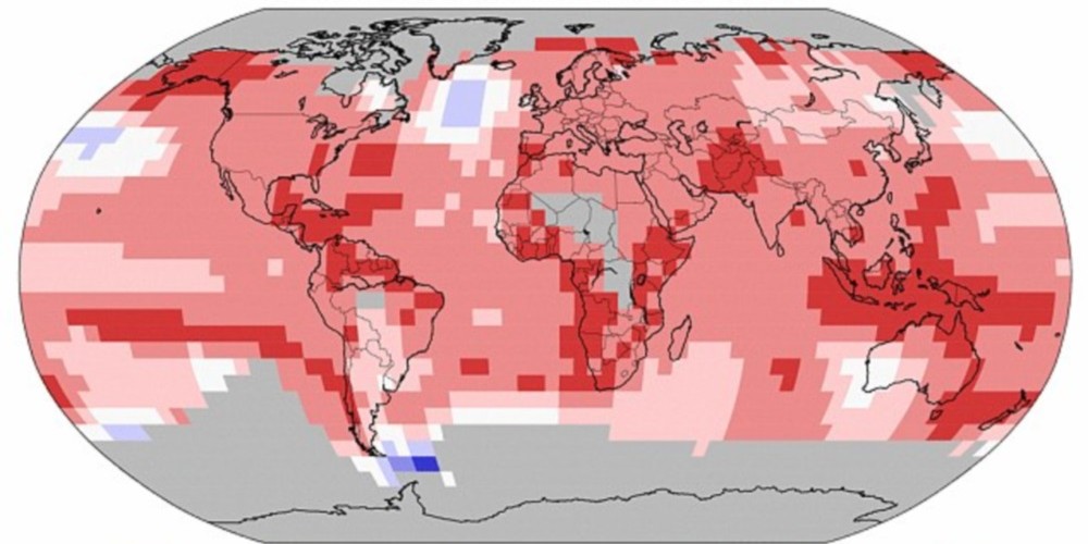 Em 2016, as temperaturas médias da superfície da Terra e oceanos aumentaram cerca de 0,94° C da média registrada no século 20 de 13,9° C, segundo dados da Administração Nacional Oceânica e Atmosférica dos EUA (NOAA). A NASA relatou dados quase idênticos aos do UK Met Office e Universidade de East Anglia, que também acompanhou as temperaturas globais a pedido das Nações Unidas.
